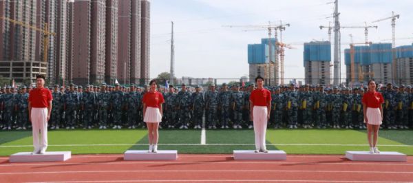 伴随着庄严嘹亮的国歌声,五星红旗冉冉升起,军训汇报正式拉开帷幕。