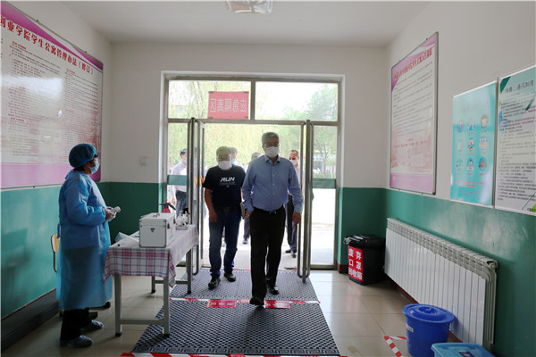 5月7日下午,自治区教育厅检查评估指导组第五组组长、自治区教育厅党组成员、内蒙古教育招生考试中心主任李盈,工作组成员、财务处处长张润厚,工作组成员、高校毕业生就业指导中心副主任王清,工作组成员、大中专蒙文教材编审办副主任唐苏格一行4人来伟德检查评估学院疫情防控和开学复课准备工作。学院党委书记肖平,党委副书记、院长包广才教授和其它学院领导班子成员及学院疫情防控各专项组组长陪同此次检查评估工作。
