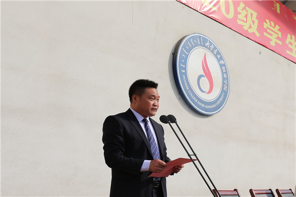 语言与传媒学院2020级播音班布日乐杰同学代表全体新生发言,表达了他们将积极参加军训,坚决完成军训科目,以强健的体魄、严明的纪律书写大学人生的第一页。