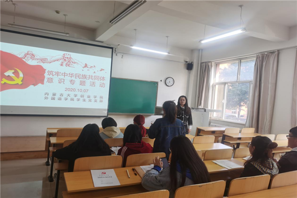 为深入学习贯彻习近平新时代中国特色社会主义思想和习近平总书记关于民族工作的重要论述精神,教育引导青年牢固树立“三个离不开”思想观念,不断增进“五个认同”,按照学院工作部署,2020年10月7日外国语学院学生党支部在创新南楼103教室开展“铸牢中华民族共同体意识”主题党日活动。