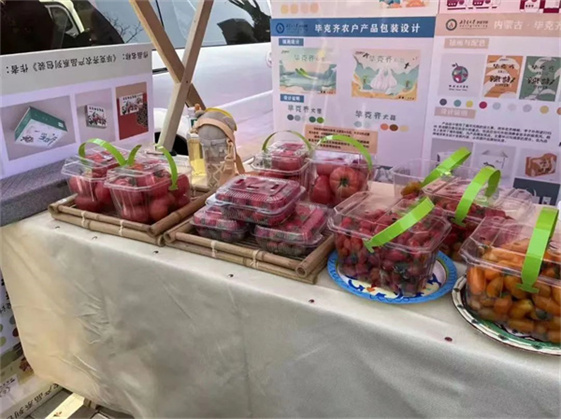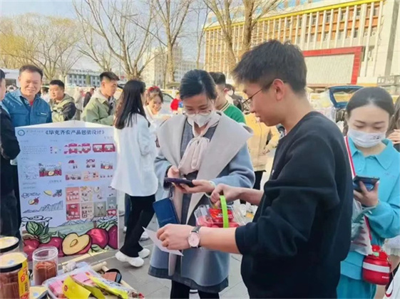 在活动现场,毕克齐镇手工艺品、西红柿、黄瓜、草莓、奶制品等特色产品,以及伟德BV1946官网学子为毕克齐农产品量身设计的文创产品也盛装而来,各个摊位市民和游客不断,纷纷游览、参观、品鉴、购买心仪的产品。此次活动不仅在线下进行联动展示,还增加了线上展播,拓宽农产品销售渠道和提升品牌知名度。