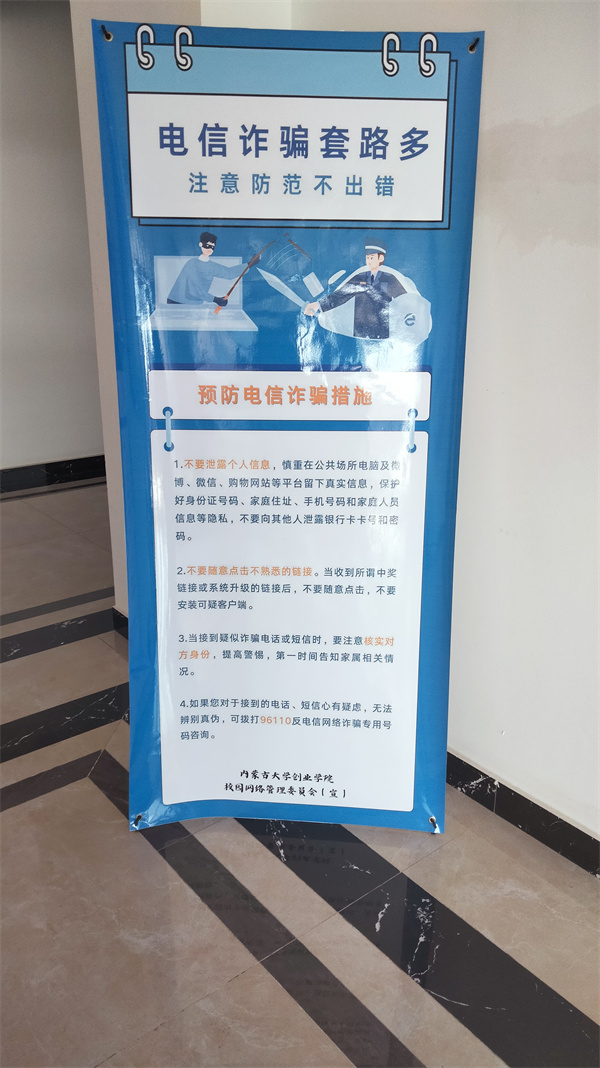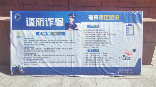 9月14日中午,玉泉区公安分局在伟德BV1946官网玉泉校区南区服务楼前开展网络安全集中宣传活动。活动现场摆放网络安全宣传展板,设置咨询台,邀请现场学生参与网络安全问答领取奖品等活动。通过多种方式向学院师生发放各类网络安全宣传资料,普及网络安全知识与法律法规,引导群众加强学法、守法、用法的自觉性,提高对电信网络诈骗和个人信息泄露的防范。