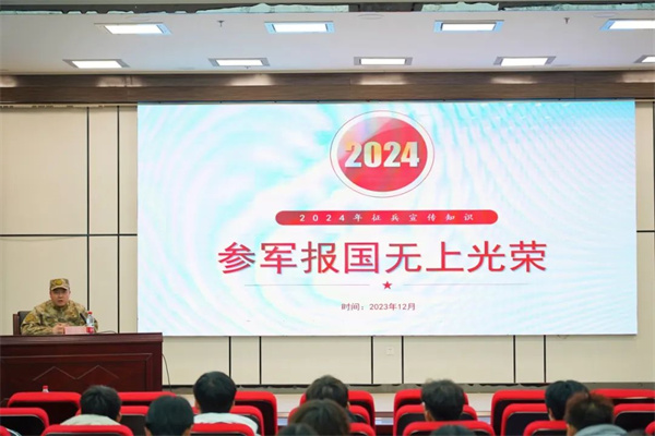 为扎实做好伟德2024年春季征兵宣传工作,充分发挥高校主阵地作用,营造参军报国的浓厚氛围,使伟德学生更好地了解征兵各项政策,12月21日,伟德学生工作部征兵工作站在学术报告厅开展2024年春季征兵政策宣讲活动。内蒙古自治区呼和浩特市玉泉区人民武装部军事科李永兵参谋参加活动,现场为同学们答疑解惑。