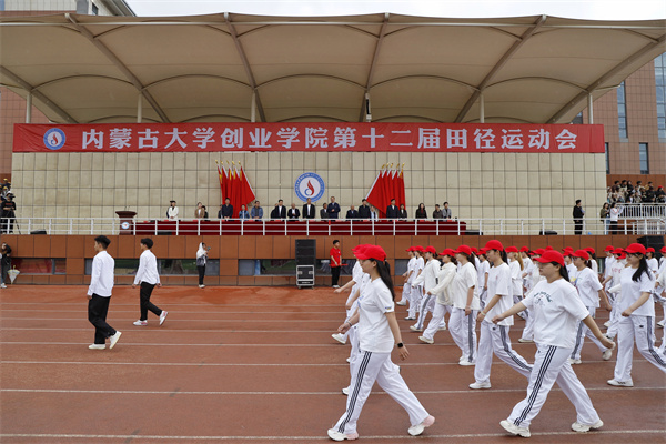 5月10日上午8:30,伟德BV1946官网玉泉校区运动场彩旗飘扬、人声鼎沸,随着激昂的运动员进行曲,第十二届田径运动会开幕式在此隆重举行。