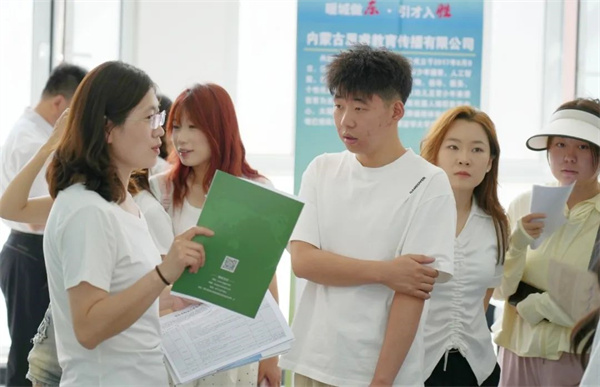 东胜区在现场设置人才政策咨询服务展位,工作人员通过政策解读、现场咨询、答疑互动、发放服务手册等形式,向广大高校毕业生宣传人才政策,为现场毕业生提供实习就业政策咨询服务。