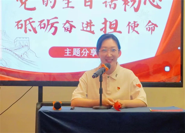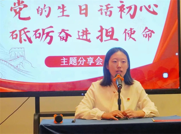 党员与党的故事,是每一个党员与中国共产党共同成长、共同奋斗的生动体现。教师党员孟丽媛、殷睿宏、周颖、毕业生党员赵爽结合自身工作学习实际,分别分享了自己与中国共产党的故事及收获感悟,深深感染了在场所有人,让大家产生了强烈的情感共鸣,也在精神上得到了洗礼和升华。
